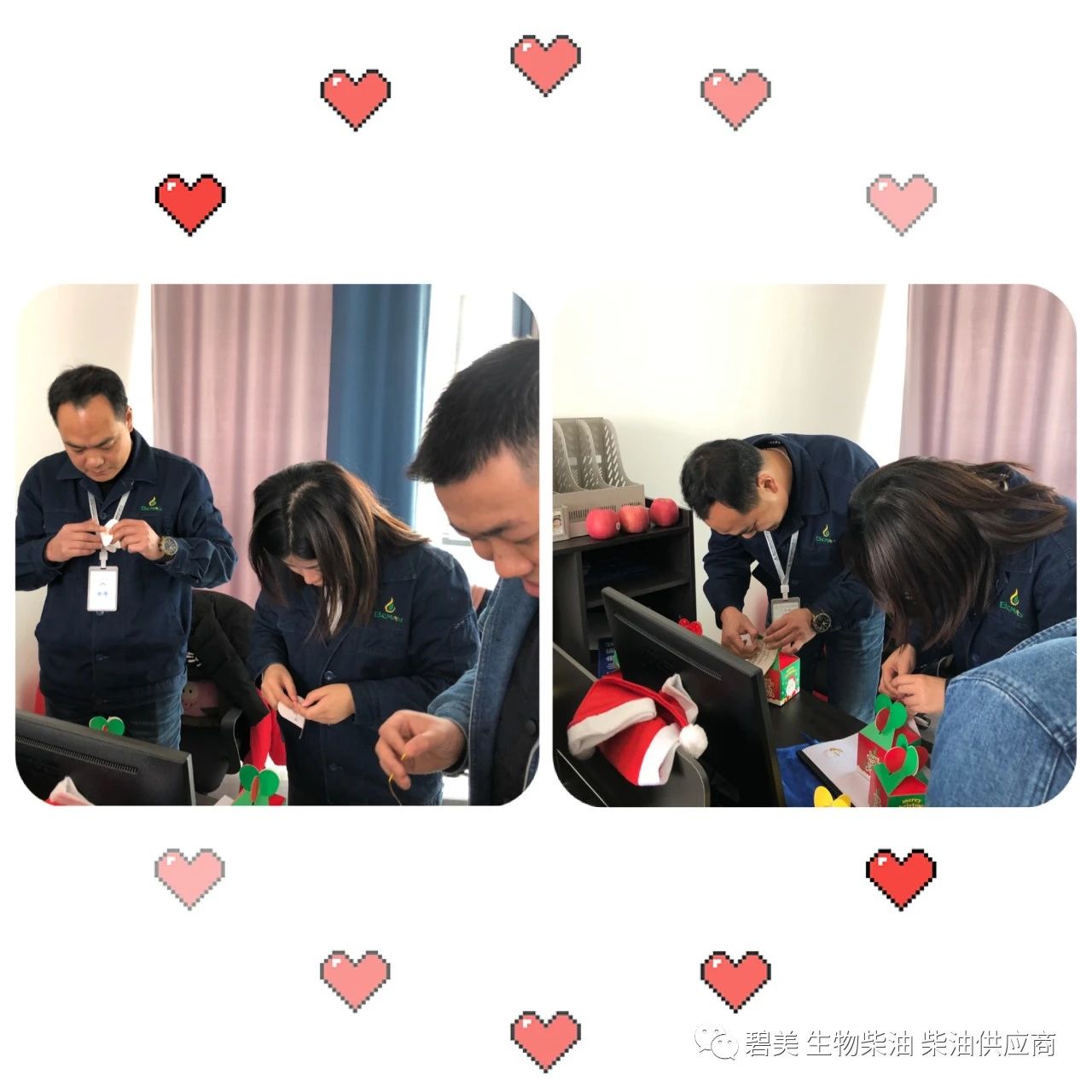 在行政部的精心安排下,给大家送上最美好的祝福,我们为碧美上上下下人员精心准备了一个“金苹果”,寓意着我们对安全的期望像“金苹果”一样平平安安,总经理石健君也参与其中。每个苹果都会对应一张小贺卡,贺卡上针对每个岗位写着相对祝福的话语。